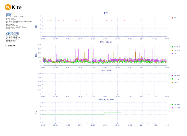 接下来看游戏方面的表现,《原神》极高画质30分钟平均帧率60.4帧,帧率曲线十分稳定,全程几乎没有帧率波动,而且温度控制表现优秀,正面41.1度,背面39.9度。简直就是稳定不热的标杆表现,而如此游戏体验,能够让大家长时间玩下去了。