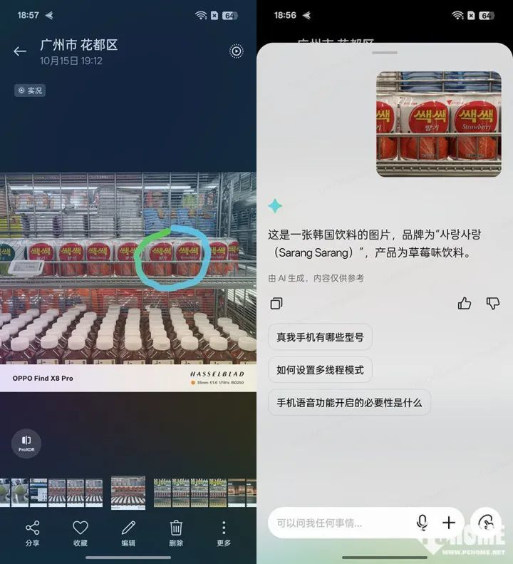 另外,OPPO在AI图片处理上也得到了进化,除了AI路人消除之外,还增加了AI去反光和AI超清像素功能。AI去反光能消除玻璃造成的反光效果,让图片变得非常通透。超清像素则能对图片进行清晰度修正,哪怕是很小一部分图片,也能修成4K大片。对比样张来看,我们截取的一小部分图片,在修正后仿佛就是直接拍出来的清晰大片一样。