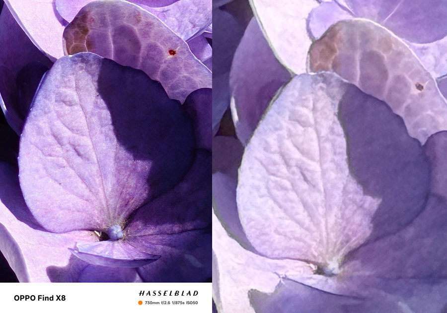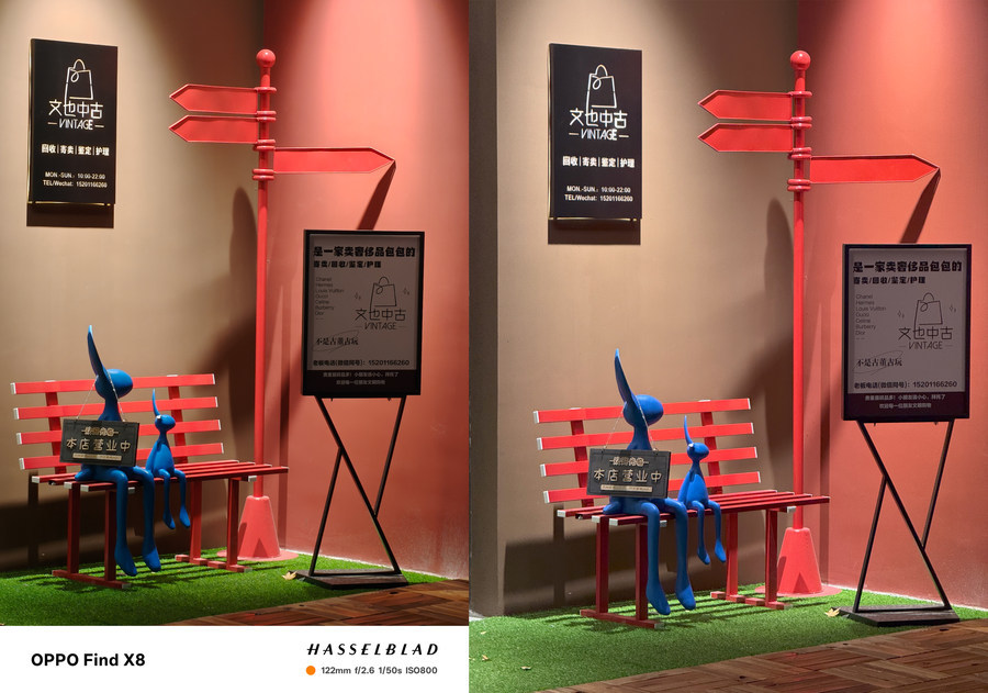先来看主摄表现,OPPO Find X8与iPhone16 Pro Max的细节解析能力几乎一致,主要区别在色彩方面,iPhone对于色彩和曝光的处理偏向真实,所以看起来有些平淡,要想让照片出彩需要做进一步调整。而OPPO Find X8的哈苏影调更能凸显明暗对比,有着更强的氛围感,无需后期就可以直接分享。