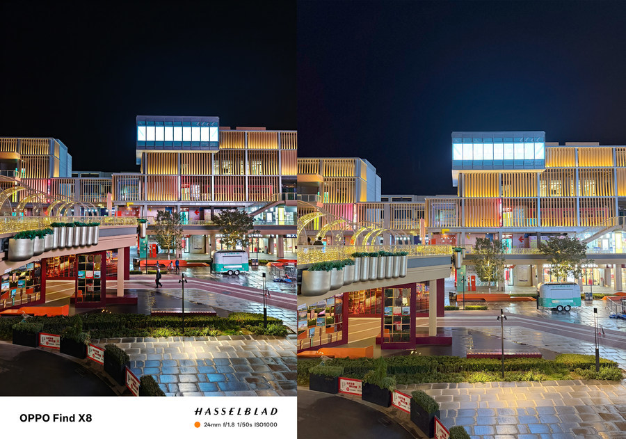 在主摄拍摄夜景时,OPPO Find X8在有着清晰的细节呈现的同时,对高光、眩光的压制能力也要更强一些。
