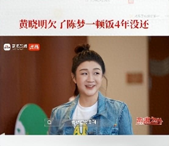 10月26日,奥运冠军陈梦的采访视频曝光,她透露表哥黄晓明欠她一顿饭3年没还。