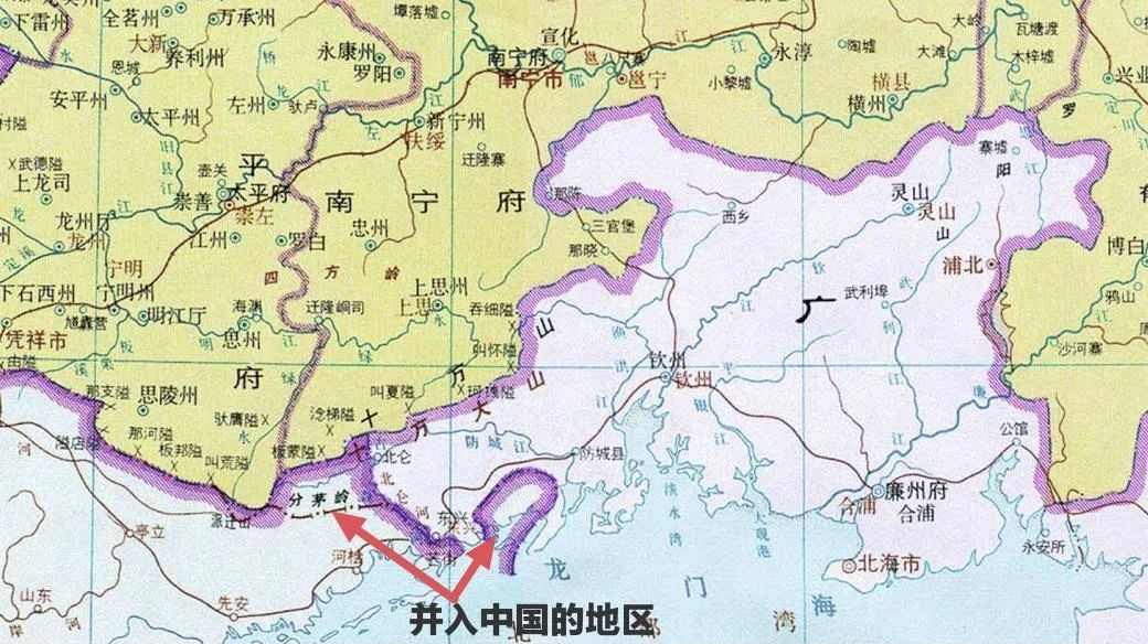 中越依约交换部分领土,其中越南的飞地(京族三岛一带)、分茅岭以北被划入广东廉州府(今属广西)。居住在飞地的3000余京族渔民成为大清臣民。