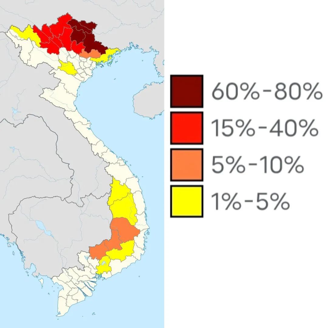 壮族是中国第一大少数民族,亦是中越间规模最大的跨境民族。越南将壮族分为岱依族、侬、布标等6个民族。其中岱依族人口约180万(2020年),是越南第一大少数民族。