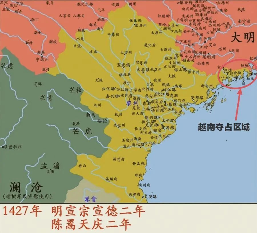 西北方,越南在1431年控制了原属中国云南的宁远州(今越南莱州省)。明朝对西南少数民族聚居区实行羁縻统治,当地土司被任命为世袭官员。实际上与明朝中央的联系并不紧密。