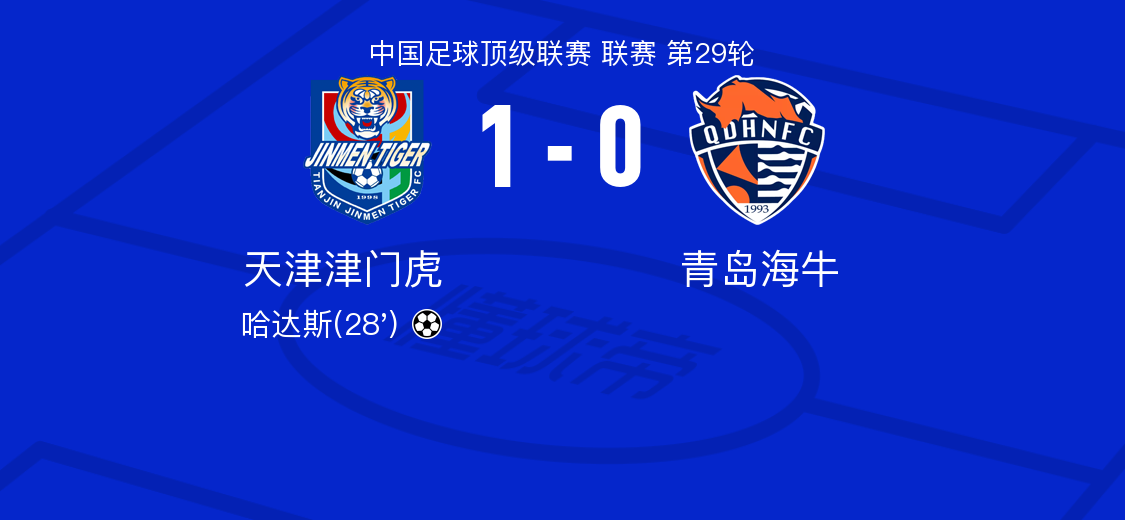 北京时间10月27日天津津门虎vs青岛海牛,哈达斯得到全场最高的8.3分,宋文杰得到全场最低的6.3分