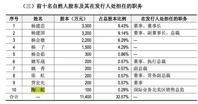 相比黄圣依对资产的一连串问号,杨子的前妻可以说是把属于自己的资产牢牢抓在自己手上。15年前的一份《招股书》中,杨子的配偶还不是黄圣依,而是另有其人名为陶虹,陶虹不仅在公司任职,也是公司的股东之一。