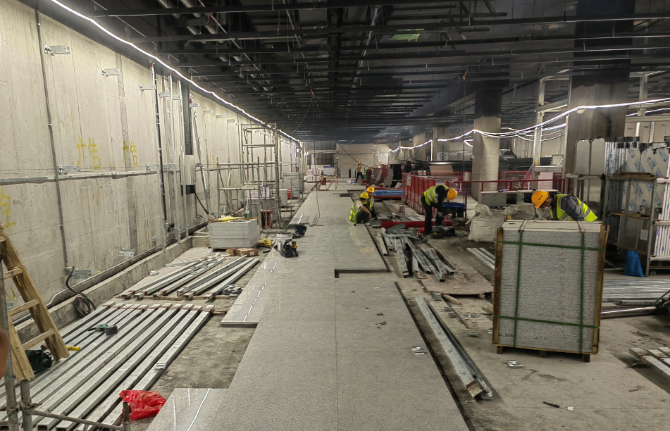 变电安装工程完成95%,环网工程完成98%,接触网工程完成86%,预计11月底可具备环网电通条件,12月底可具备接触网热滑条件;风水电安装及装修整体的形象进度完成约63%,现正全面推进公共区精装修施工。