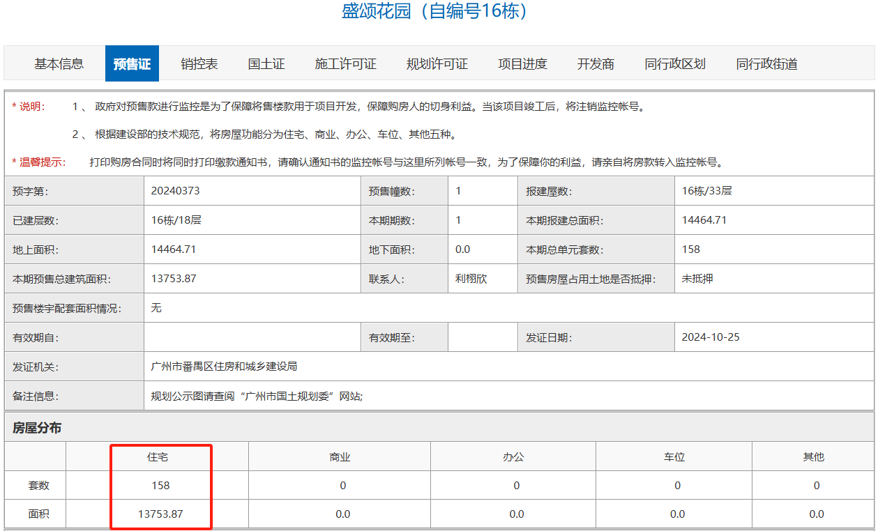 越秀星汇锦城二期16号楼获批158套住宅房源,2楼可售3户,3-33楼每层5户。今年8月曾获取1张预售证,可售套数159套。