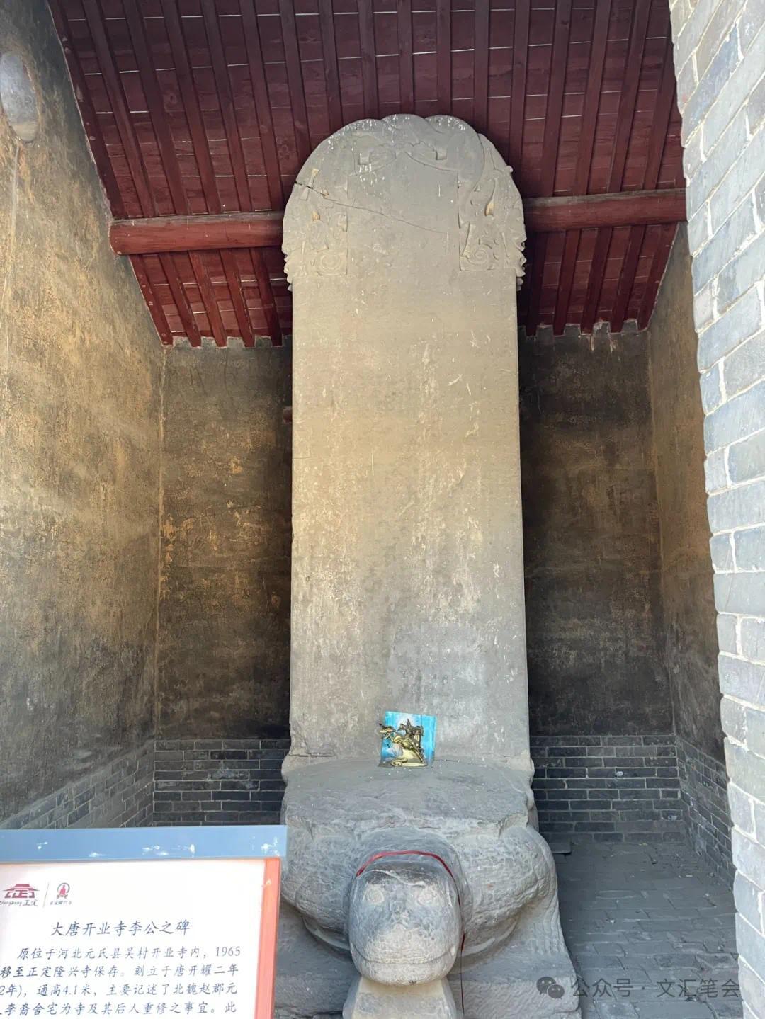 名寺多有名碑相伴。隆兴寺里的古碑并非只有龙藏寺碑,还有如“大唐开业寺李公之碑”(下图),也是刻于初唐的楷法上乘、点画结体精美的佳作,可惜因名气不大,被安置在寺院最后一进的某个角落里。其他如“大宋重修铸镇州龙兴寺大悲像并阁碑铭”,立于北宋端拱二年(989年),出于当时的名手。寺内还有赵孟頫写的一块小碑。