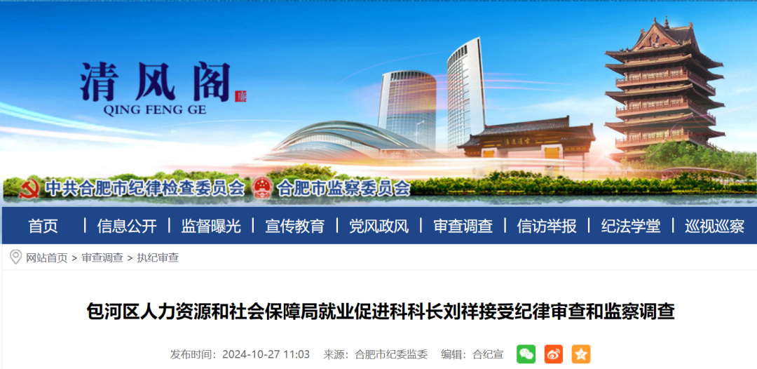 包河区人力资源和社会保障局就业促进科科长刘祥涉嫌严重违纪违法,目前正接受包河区纪委监委纪律审查和监察调查。(包河区纪委监委)