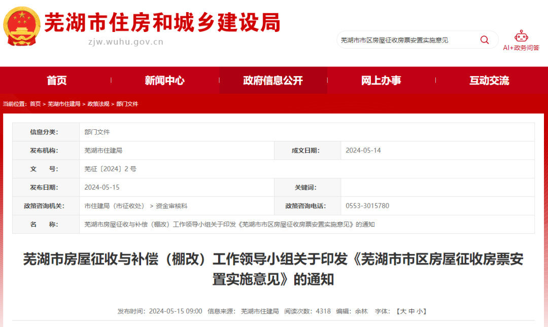 今年5月,芜湖市房屋征收与补偿(棚改)工作领导小组关于印发《芜湖市市区房屋征收房票安置实施意见》的通知,明确房票的概念和适用范围。2024年10月25日,芜湖市住房和城乡建设局召开《芜湖市市区房屋征收房票安置实施意见》解读新闻发布会,针对市民关心的热点问题也在现场进行回答。
