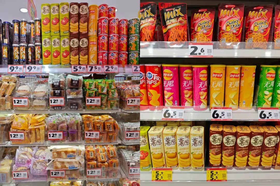 店面大小不同,直接决定了店内能够摆放的sku不一样。对比而言,赵一鸣零食品类更多,尤其是散装称重的零食。在方便面、薯片、水等知名品牌上,两家几乎没有差异,其他商品则是不同的供应商。