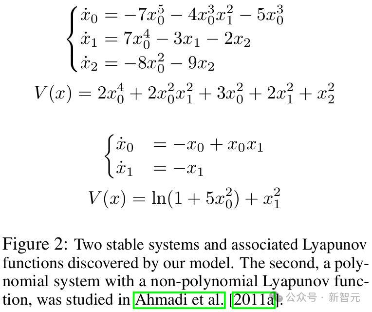 它们还可以发现非多项式系统的李雅普诺夫函数(目前尚无已知算法),并且能够重新发现由Ahmadi等人发现的多项式系统的非多项式李雅普诺夫函数。