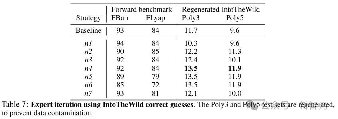 此外,研究者还从头开始重新训练一个模型(n7),使用BPoly(1M)、FBarr(500)、FLyap(500)和FIntoTheWild(2,000)的混合。