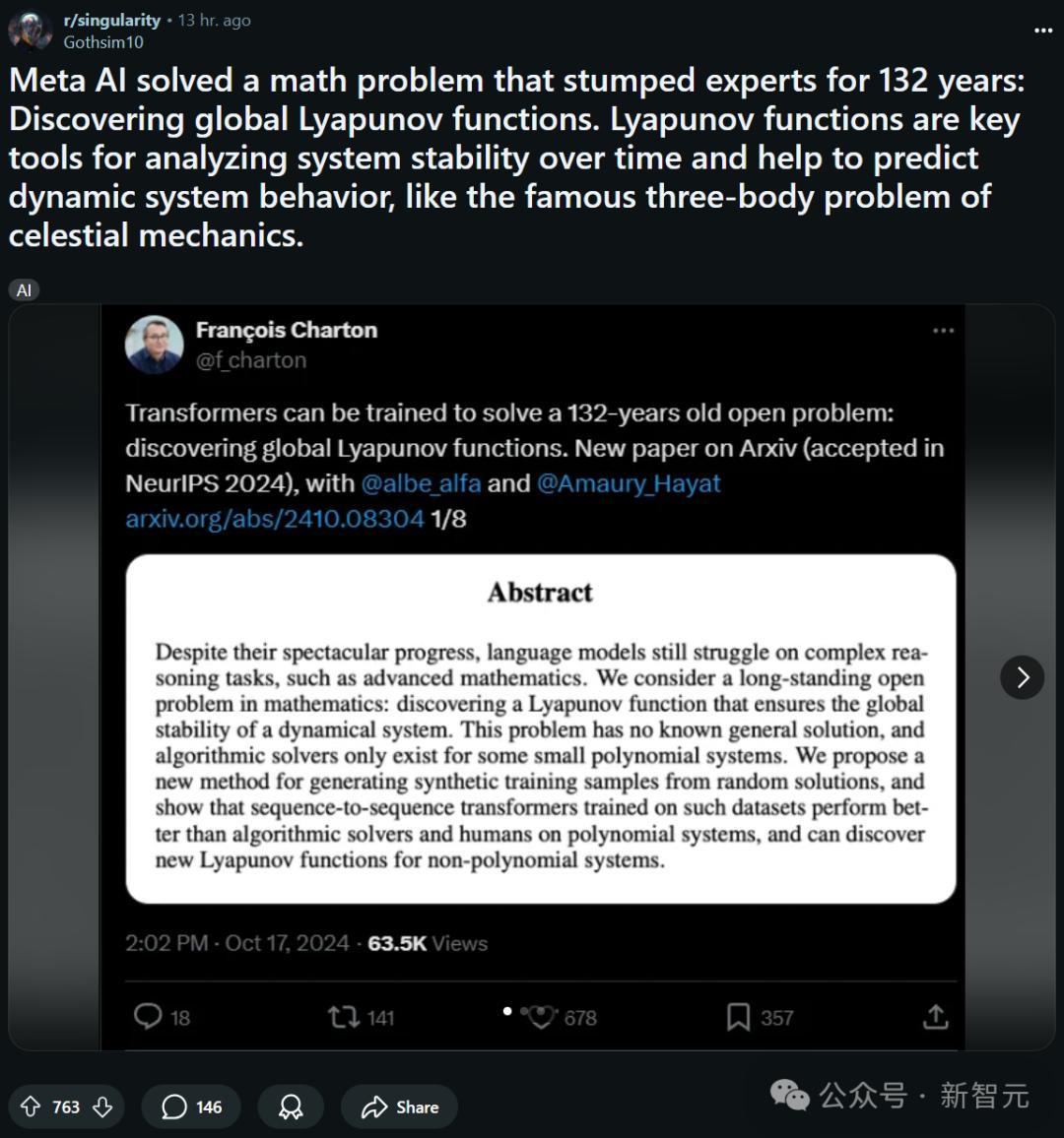 【导读】Transformer解决了三体问题?Meta研究者发现,132年前的数学难题——发现全局李雅普诺夫函数,可以被Transformer解决了。「我们不认为Transformer是在推理,它可能是出于对数学问题的深刻理解,产生了超级直觉。」AI可以搞基础数学研究了,陶哲轩预言再成真。