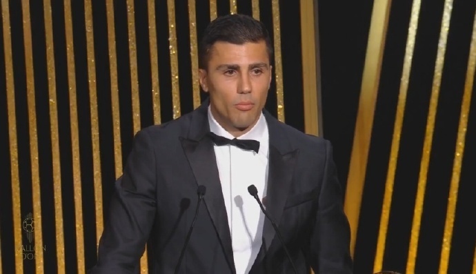罗德里在获奖后表示:“对我来说这是一个不可思议的夜晚。我要感谢很多人,《法国足球》和欧足联,以及所有投票给我的人。我知道这对我、我的家人和我的国家来说是特别的一天,我想说声谢谢感谢你。”