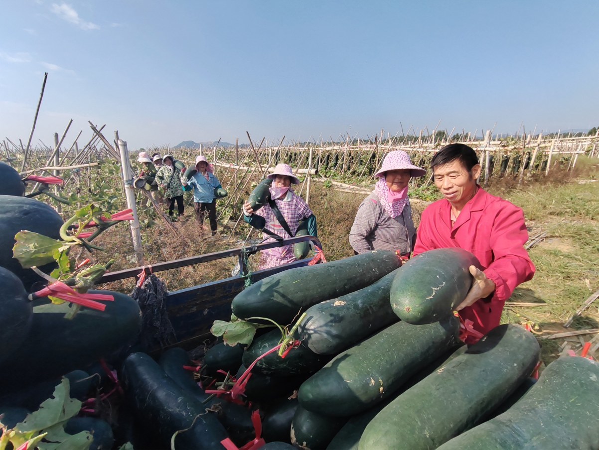 近日,在乐安县山砀镇龙义村冬瓜种植基地,村民们正在采收黑皮冬瓜。近年来,该镇通过党建引领、合作社示范,鼓励引导退役军人、产业发展能手引进优良品种,实行规模化种植,不断培育壮大冬瓜产业。目前,该镇黑皮冬瓜种植规模达到800亩,亩产1万多公斤。