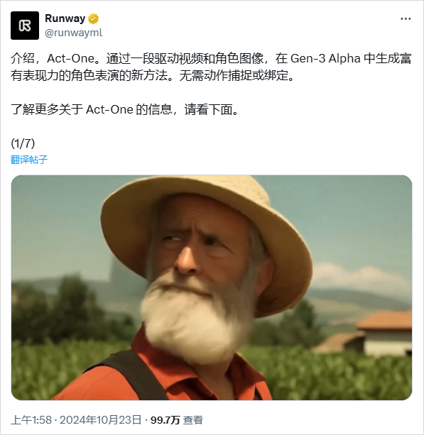 我们把这个视频,让Runway的Act-One再试试。