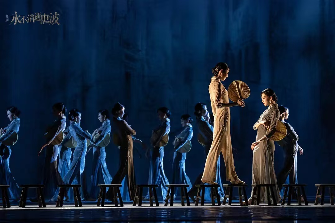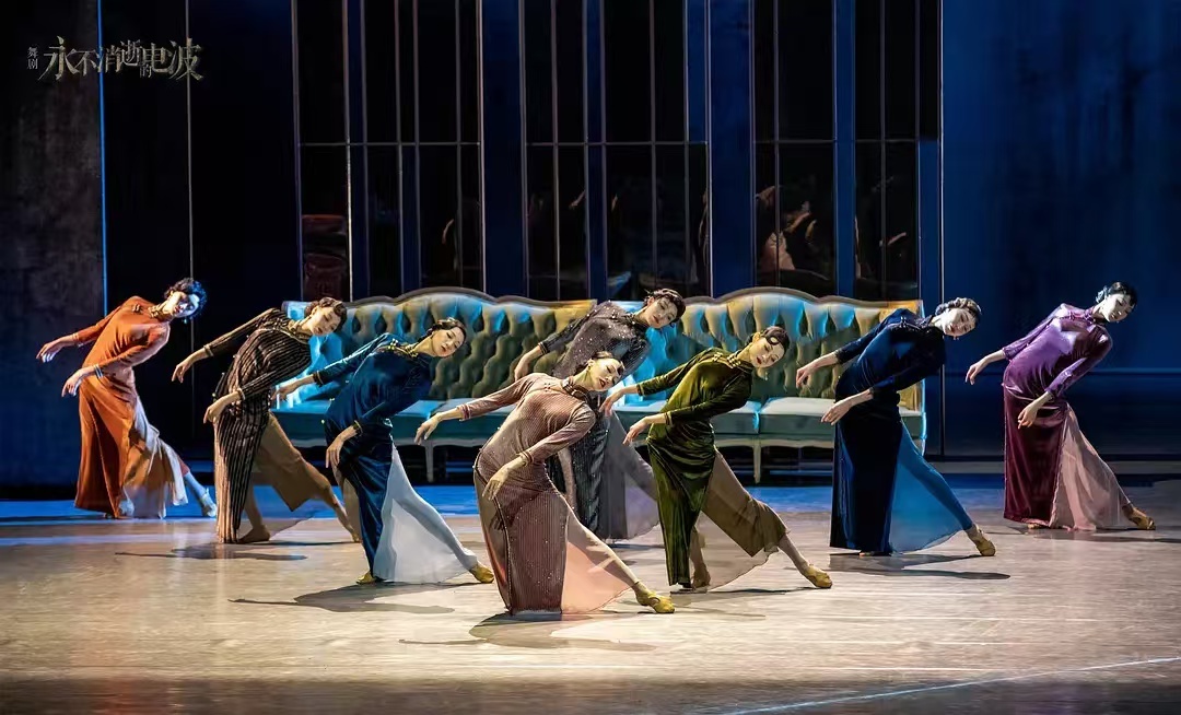舞剧《永不消逝的电波》的具身式审美令人震惊,体现在谍战题材故事元素的挖掘,对阁楼、电梯、报社和裁缝店场景戏的紧张感塑造是极为成功的。其次是在大舞段中把旗袍舞蹈的极致韵律,通过光影铺设和镜头移动体现出来。经历从电影到舞剧再到电影的传奇,舞剧电影版以历史黑白纪录片、舞剧大舞段和上海弄堂实景镜头三种方式结构电影,极大地尊重舞剧IP创作。