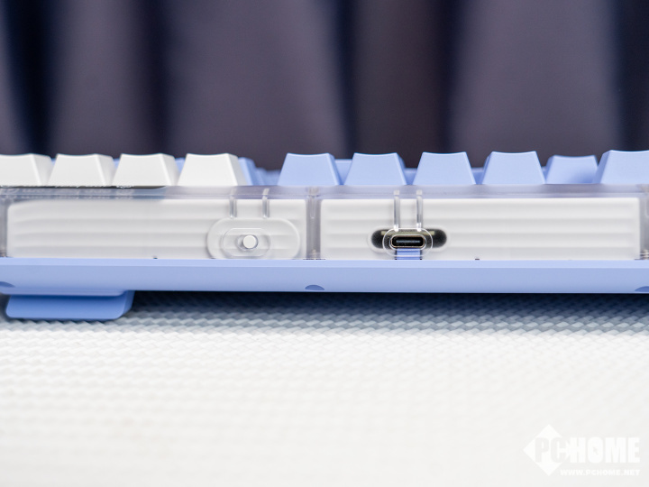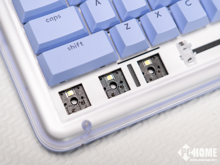 该款键盘还具备7档亮度可调的白色背光,可以借助键盘快捷键快速切换,虽然对比市面上很多键盘的RGB背光看起来有些简单,但搭配这款键盘的简约外观以及透明外壳,却正是相得益彰。
