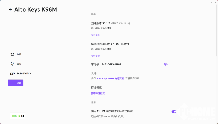 此外,Logi Options还支持调节键盘背光,切换设备,更新固件等等基础设置以及功能,为玩家使用带来更多便利。