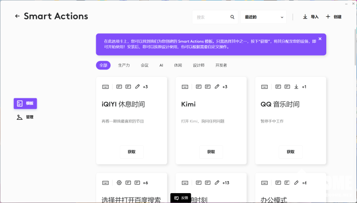 同样的,Logi Options为Smart Action提供了大量预设,这一点也和快捷指令相当类似,用户无需设置或者调整就可以使用。像一键打开百度或是其他常用网站的功能都非常好用。而且也支持根据场景进行不同的设置,比如可以一键开启所需的工作软件,会议模式自动打开使用的会议应用,一键开启音乐软件并播放歌曲等等,可以说是非常方便。
