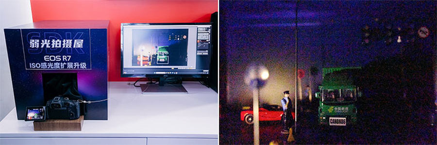 最近,佳能在“2024中国国际社会公共安全产品博览会”上亮相,除了重点展示用于高精度平面显示检测、工业检测和大范围监控的2.5亿像素CMOS感光元件LI8020SA外,还展出了一款特别版的EOS R7。这款EOS R7配备了特别开发的“ISO感光度扩展升级”固件,将相机的扩展感光度从原来的ISO 51200提升至ISO 204800,与EOS R3相当,使其在微弱光线条件下具备更强的拍摄能力,能够捕捉更多细节。