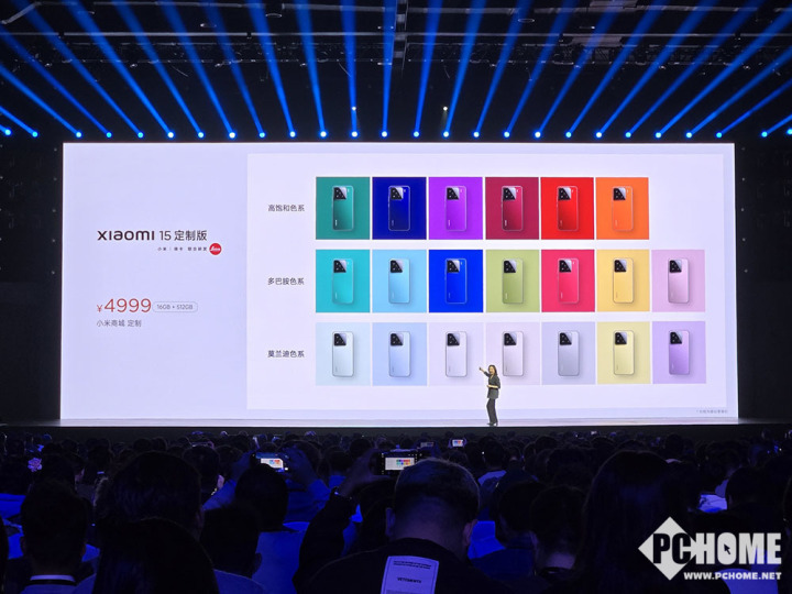 小米15提供多种配色版本,除了常规的四种配色外,还提供了高饱和、多巴胺、莫兰迪三种色系共 20 款定制后盖色彩,可自由组合出 40 种色彩搭配。另外还有一款特别设计的亮银版,使用3D热弯玻璃工艺,在背板上打造出真实的波纹效果。