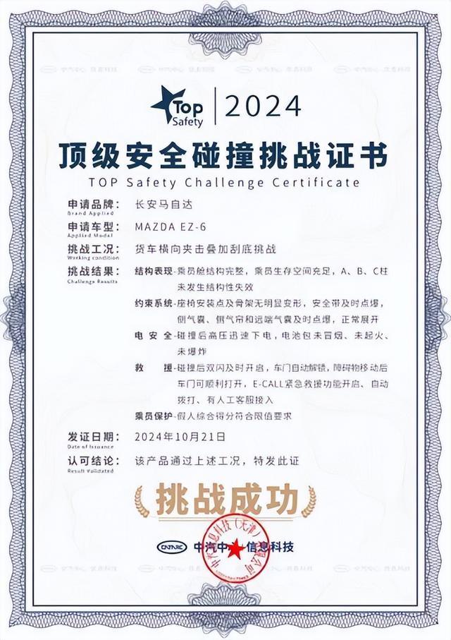相比市场上诸多合资品牌在新能源车型鲜有提及的安全,EZ-6将安全的优先级提至上市现场,可见长安马自达的信心,而这场号称“地狱级”难度的挑战,也为整个汽车行业树立了新的安全标准。