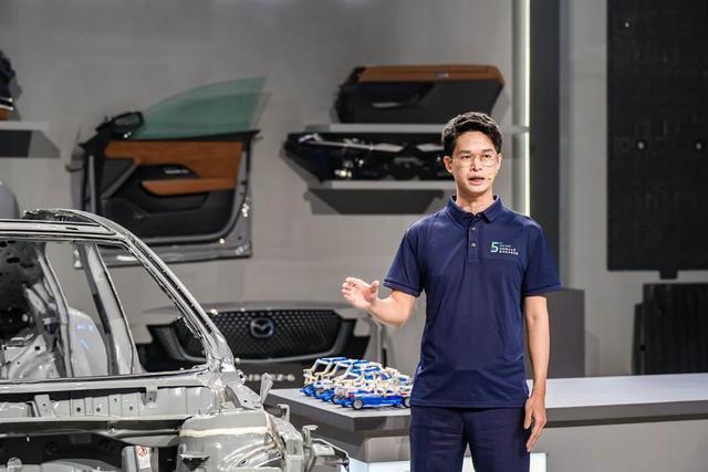 EZ-6的电池包在拆卸过后,直观呈现了托底碰撞后的电池安全管理能力。长安马自达安全官董博向观众介绍了EZ-6电池包的安全设计。