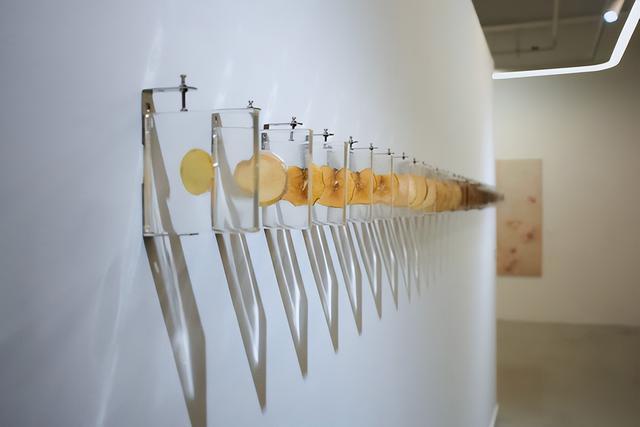 在长阳创谷内的引力艺术空间呈现的个展《肤趣无界》是张超然的首次个展项目,特邀独立策展人韩春阳策展,共计展出八组系列作品,媒介涵盖装置、绘画、综合材料等。刚从英国伦敦艺术大学切尔西艺术学院毕业的他将其近两年来对于身体与精神思考的对话集中呈现,作品的创作灵感大多来自他自己长期以来的疾病困扰,他将对个体病理反应的抗争、接纳、共存的思考融入作品之中,以互动式的视觉语言作为沟通方式表达个体情感、觉醒自我意识。张超然提到:“我想通过‘肤趣’这两个字来表达我们的皮肤和身体的一种和解。‘无界’就是在表达我想摆脱身体的种种限制,让它真正地变成一种没有界限的形式,解放自我。”