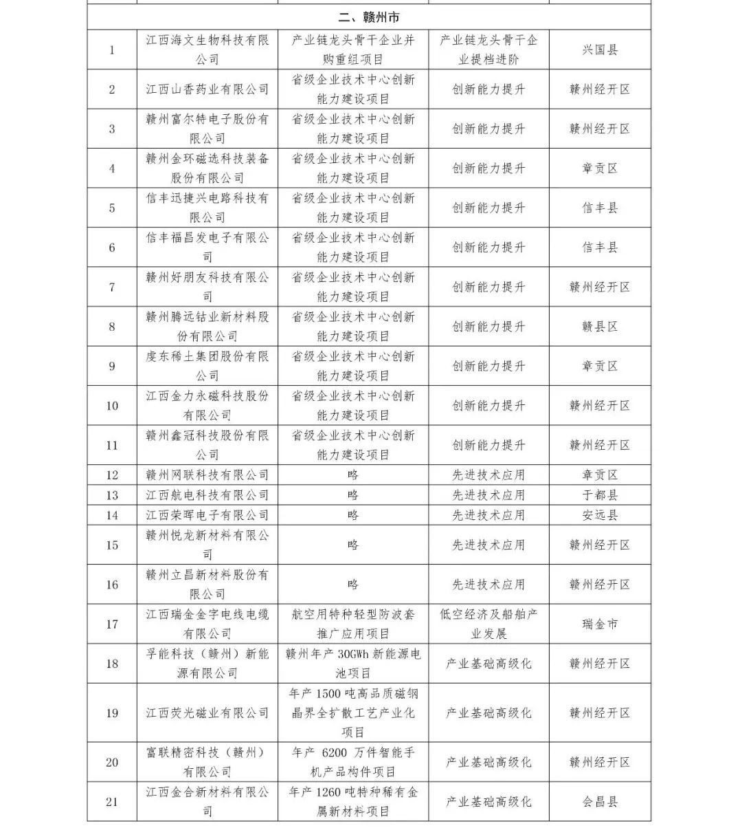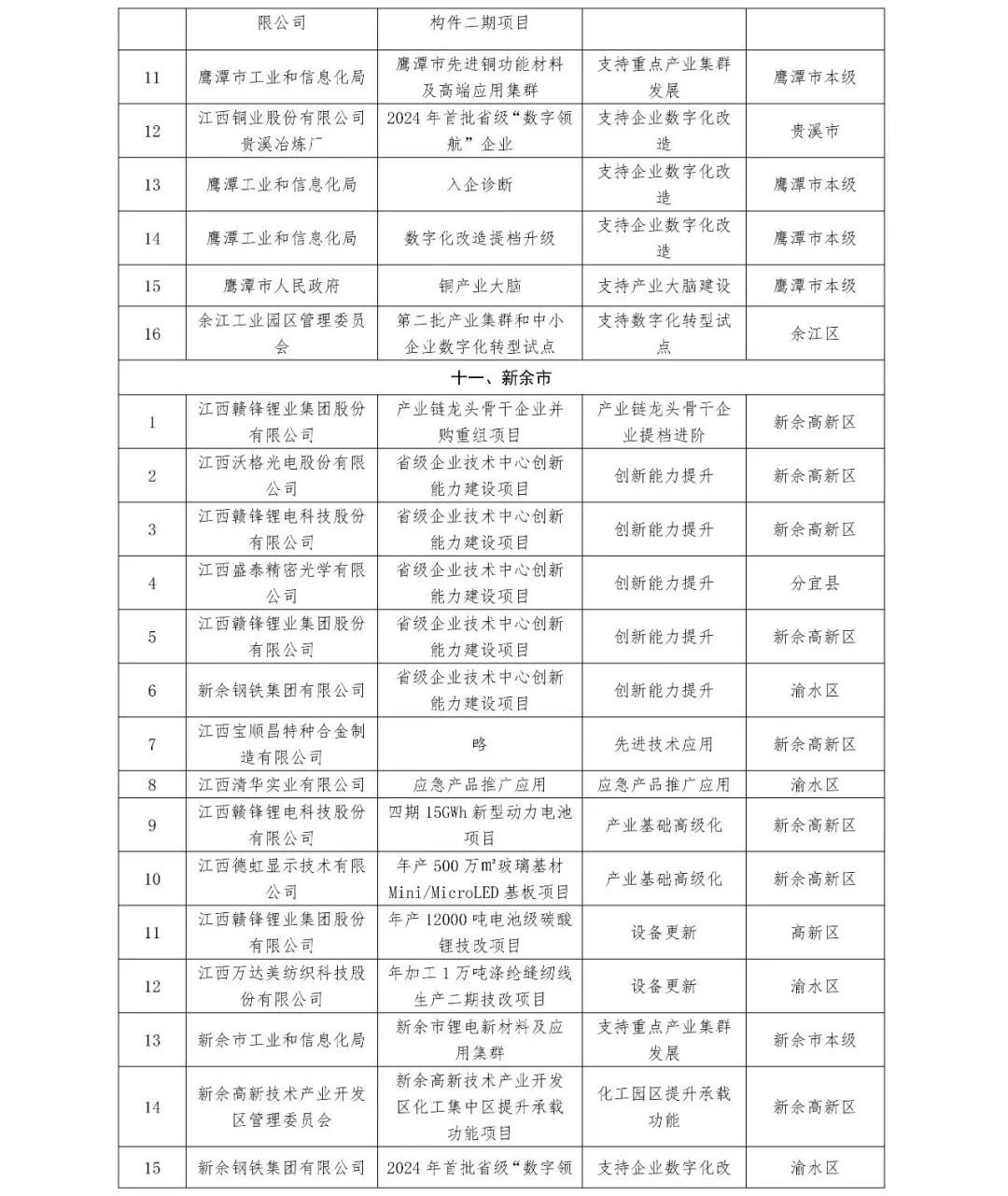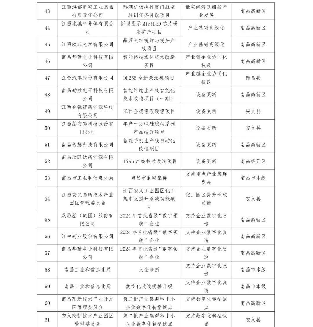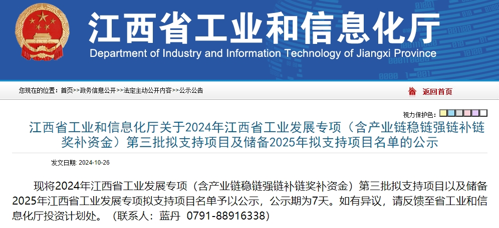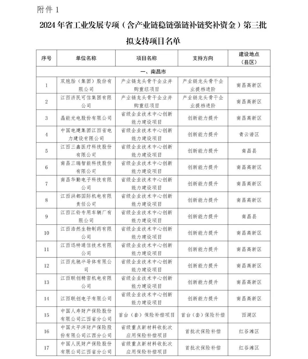 2024年江西省工业发展专项(含产业链稳链强链补链奖补资金)第三批拟支持项目以及储备2025年江西省工业发展专项拟支持项目名单
