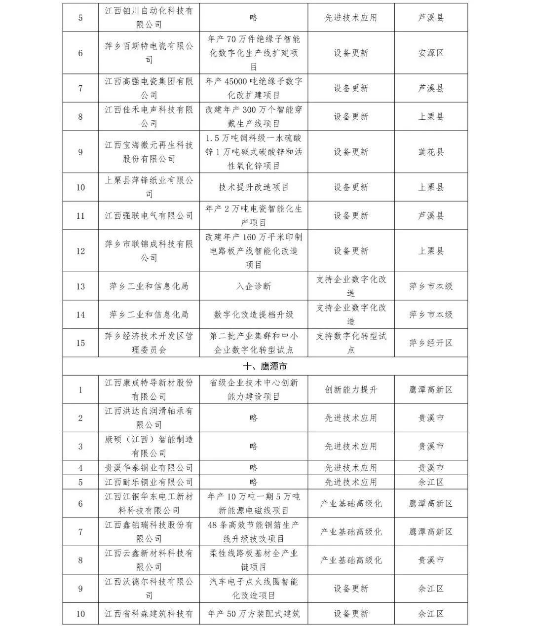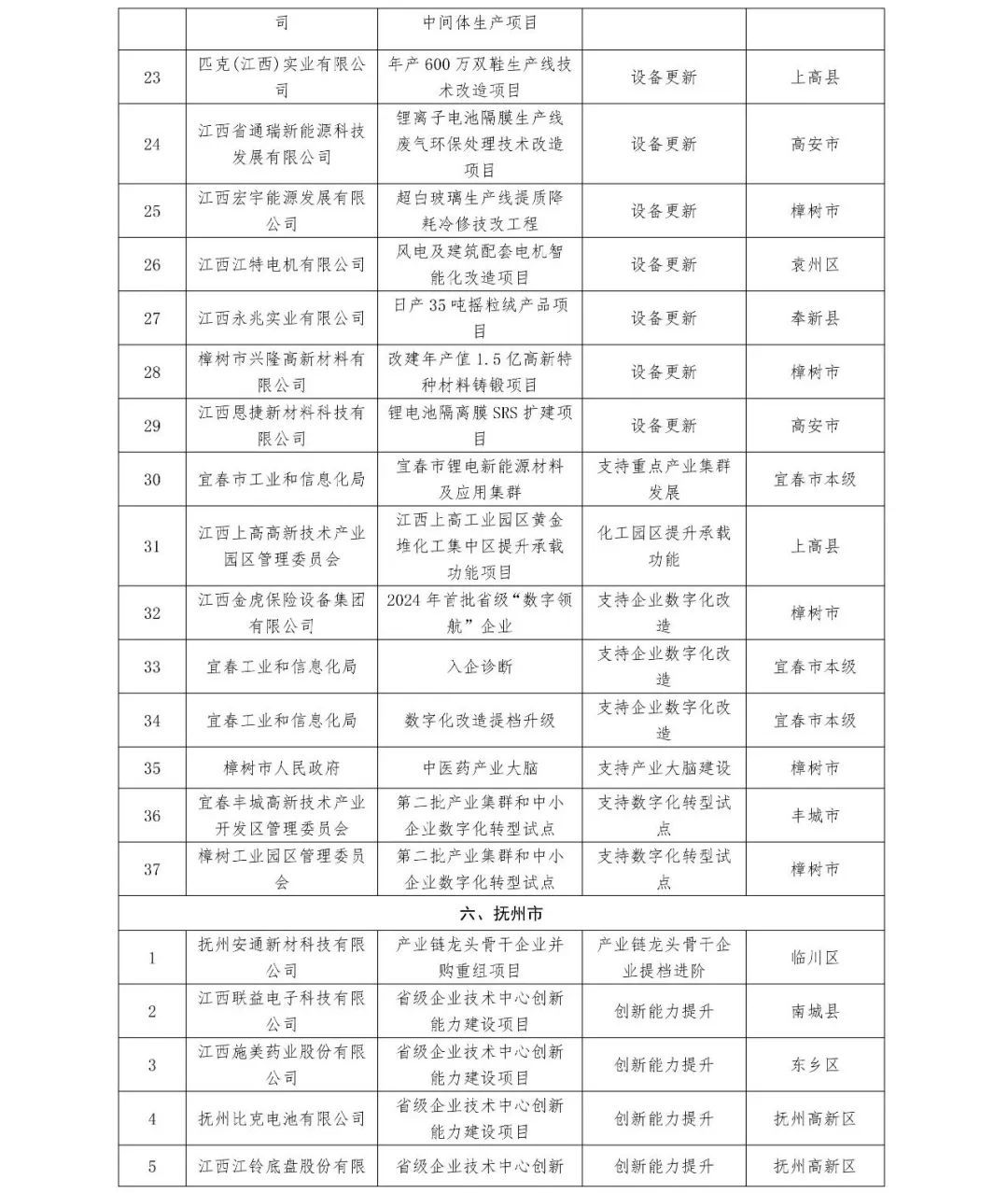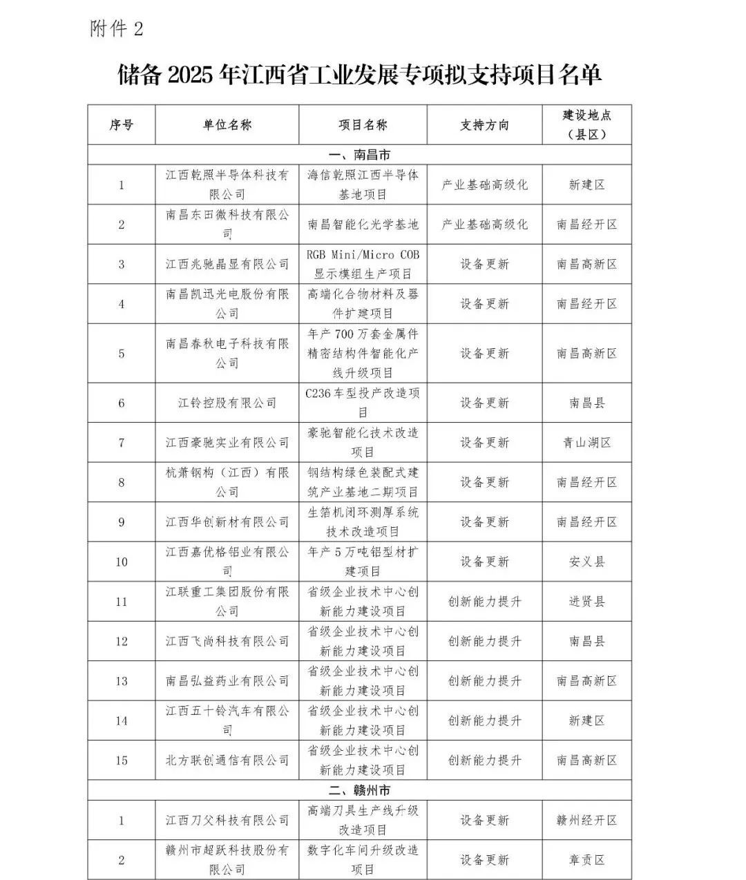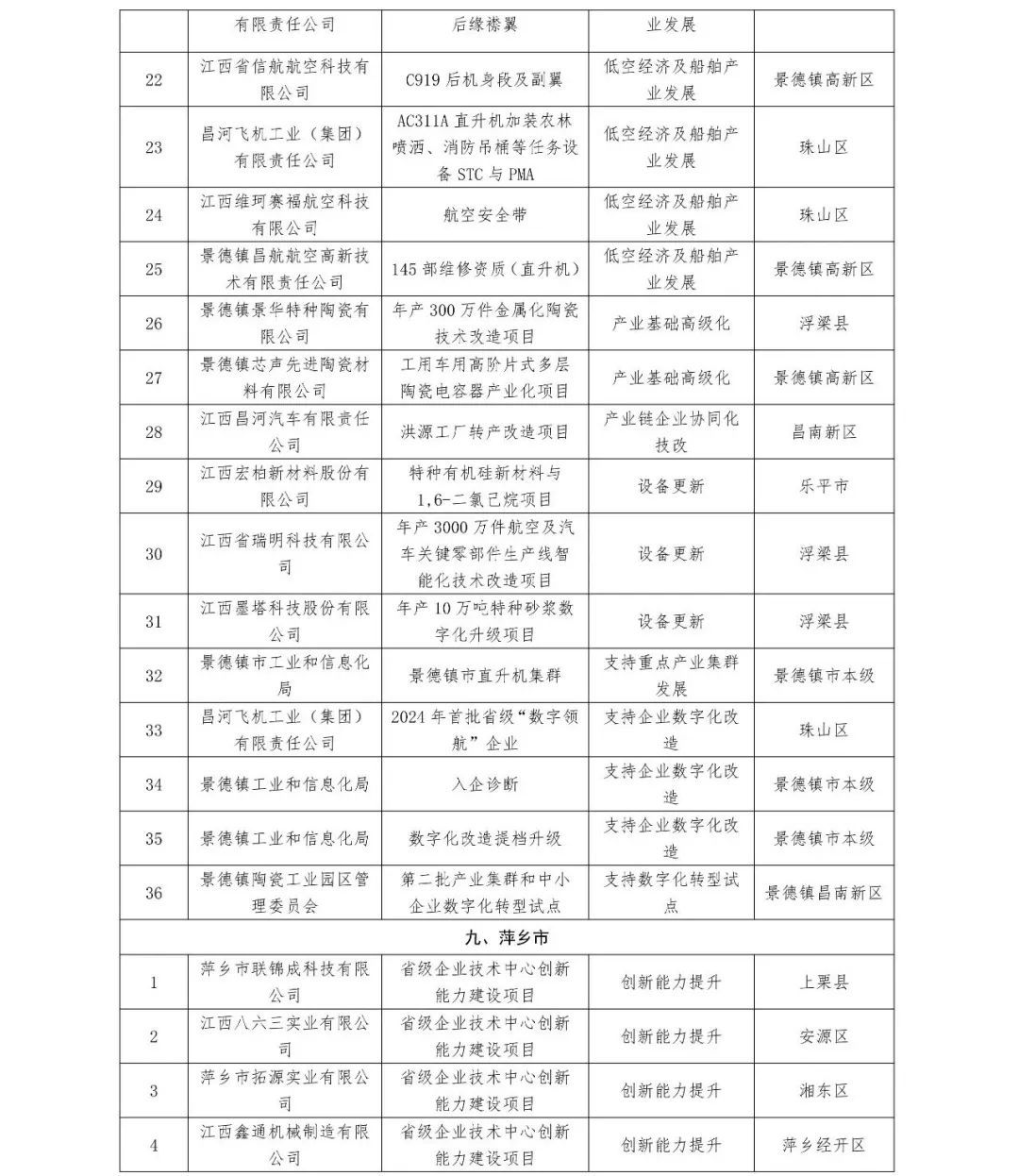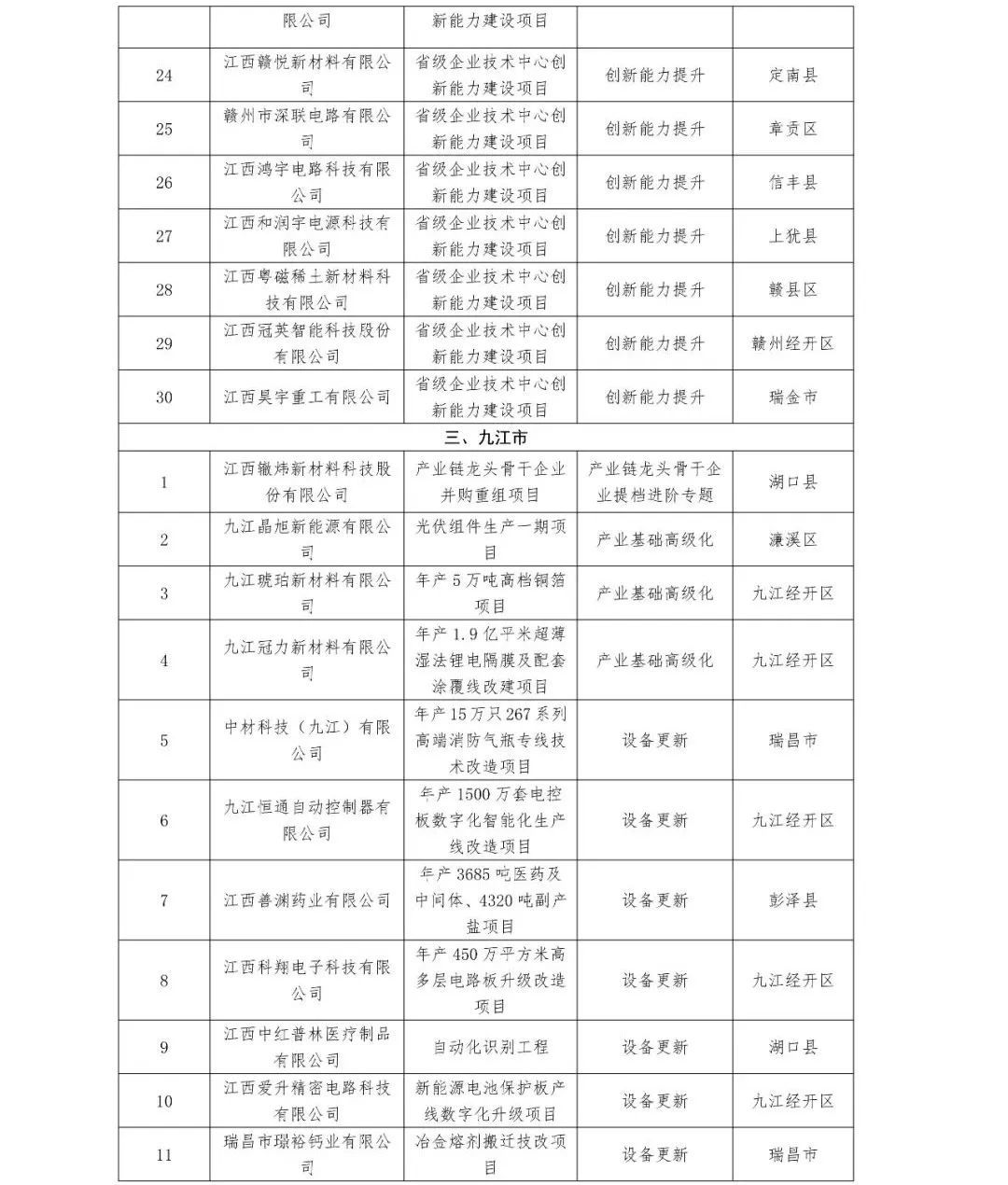 2024年江西省工业发展专项(含产业链稳链强链补链奖补资金)第三批拟支持项目以及储备2025年江西省工业发展专项拟支持项目名单