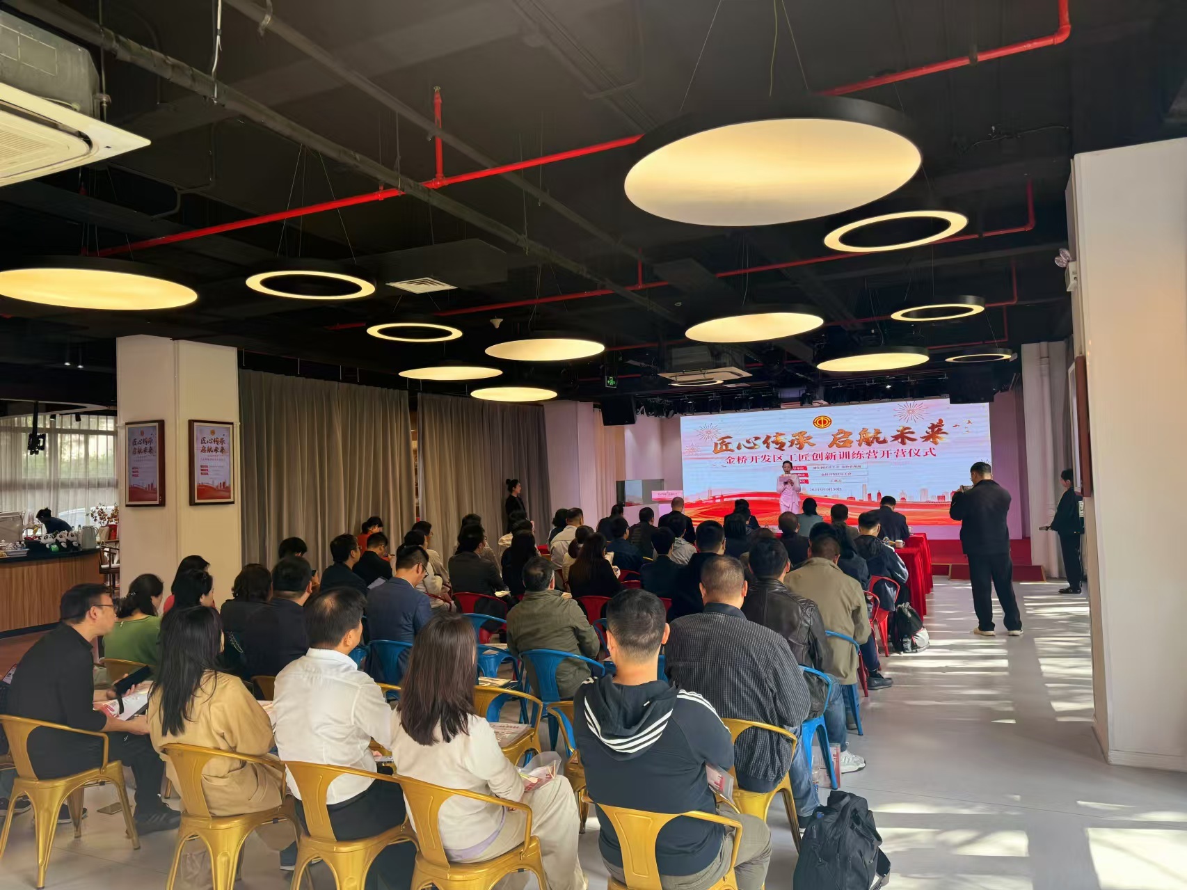 “匠心传承 启航未来”金桥开发区工匠创新训练营开营仪式今天在上海金桥产业体验中心举行,将进一步提升金桥开发区工匠的技能水平,增进工匠间的交流互动,更好发挥工匠的示范、引领作用,聚才凝智,助力金桥智造城、浦东引领区建设。