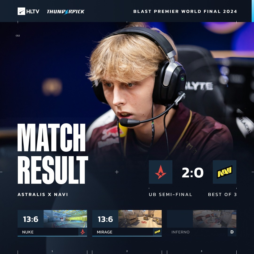 现世界排名第一的NAVI输掉比赛,掉入败者组,即将在生死局中对阵FaZe与MOUZ之间的败者。