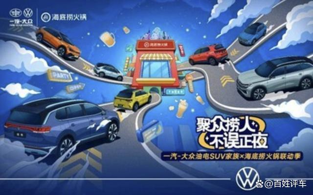 10月30日, 一汽-大众油电SUV家族和海底捞火锅官宣合作“搞事情”,共同打造了主题为“聚众捞人 不误正夜”的一系列联动事件。除了推出联名套餐,双方还在上海打造了商圈主题店和露营快闪活动,参与体验互动不仅能获得有趣的周边礼品,更有机会抽取一汽-大众SUV一年使用权等大奖。