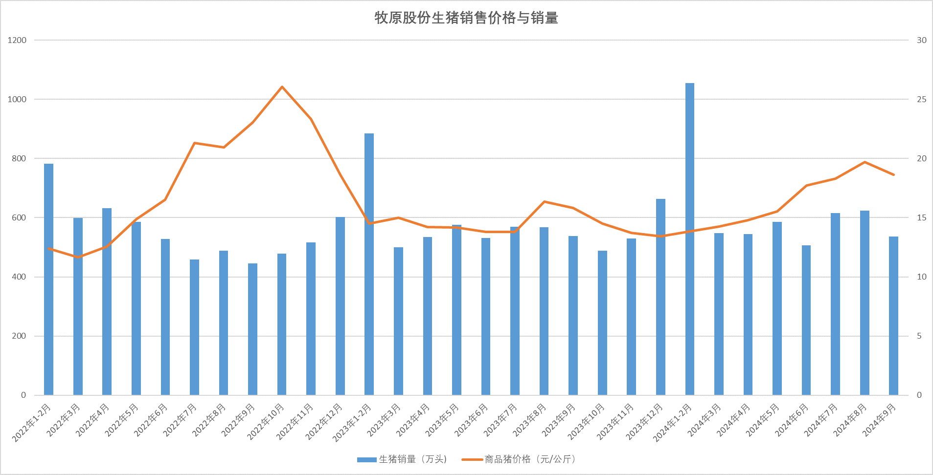 同时,据其生猪销售简报,今年1月-9月,牧原股份商品猪平均价格为16.60元/公斤,相较2023年全年的平均价格,每公斤上涨2.12元。