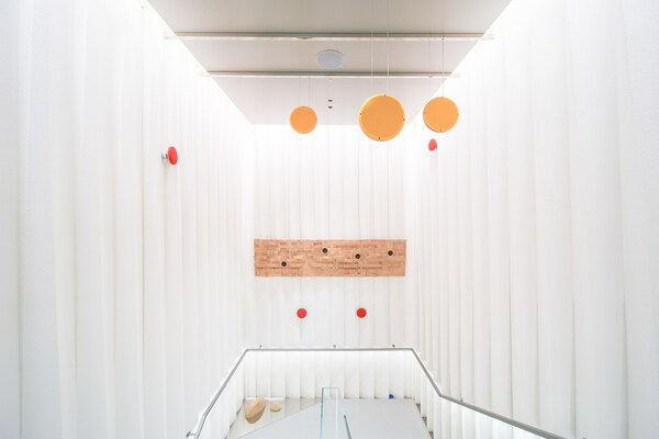 《野响》听觉空间设置于一、二层楼梯处,艺术家通过在楼梯这一日常功能空间中安置声音与物件,再现自然之声,营造出自然与人迹交织的听觉环境。在意象性的自然环境中,视觉与听觉的边界变得模糊,参与者通过聆听与移动,唤起对自然的想象与感知,在行进中完成一次户外与声音融合的艺术体验。该听觉空间作品作为SALOMON萨洛蒙联合“燃冉”计划共同呈现的“SALOMON声音特别单元”重要组成部分,更多艺术家的声音装置作品陆续将在11月5日“燃冉”艺术季开幕之际亮相。
