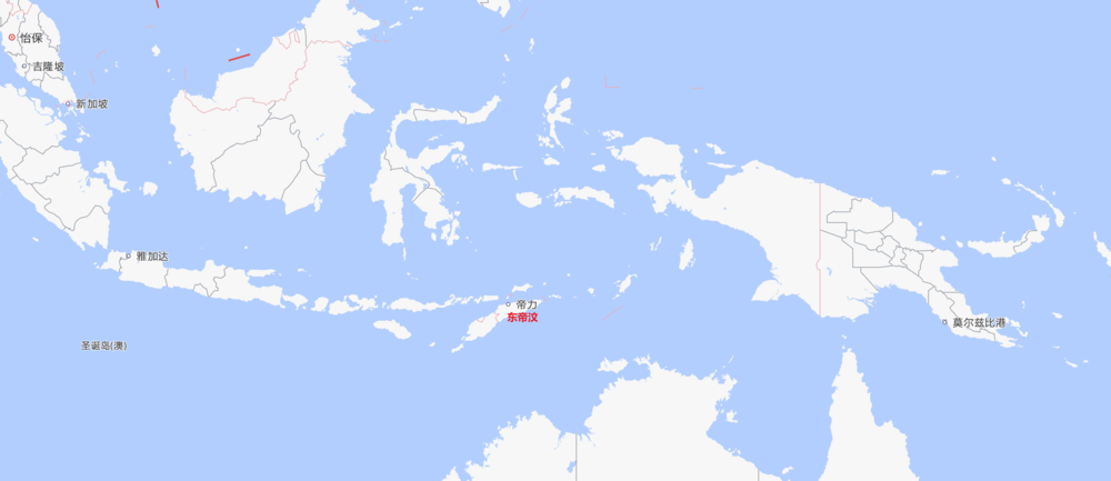 ▲印尼阴影下的东帝汶(帝力为东帝汶首都)