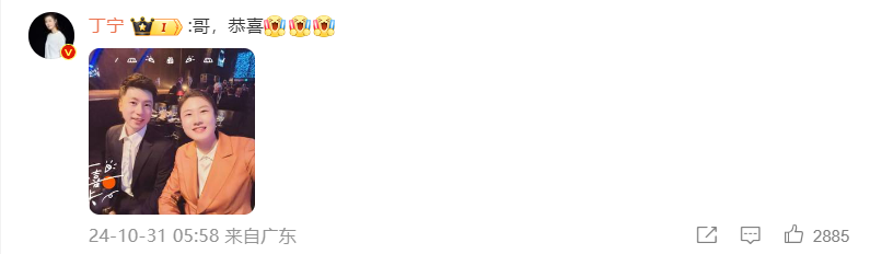 国际奥协运动员委员会委员、亚奥理事会运动员委员会主席丁宁在评论区晒出合影并留言:哥,恭喜!