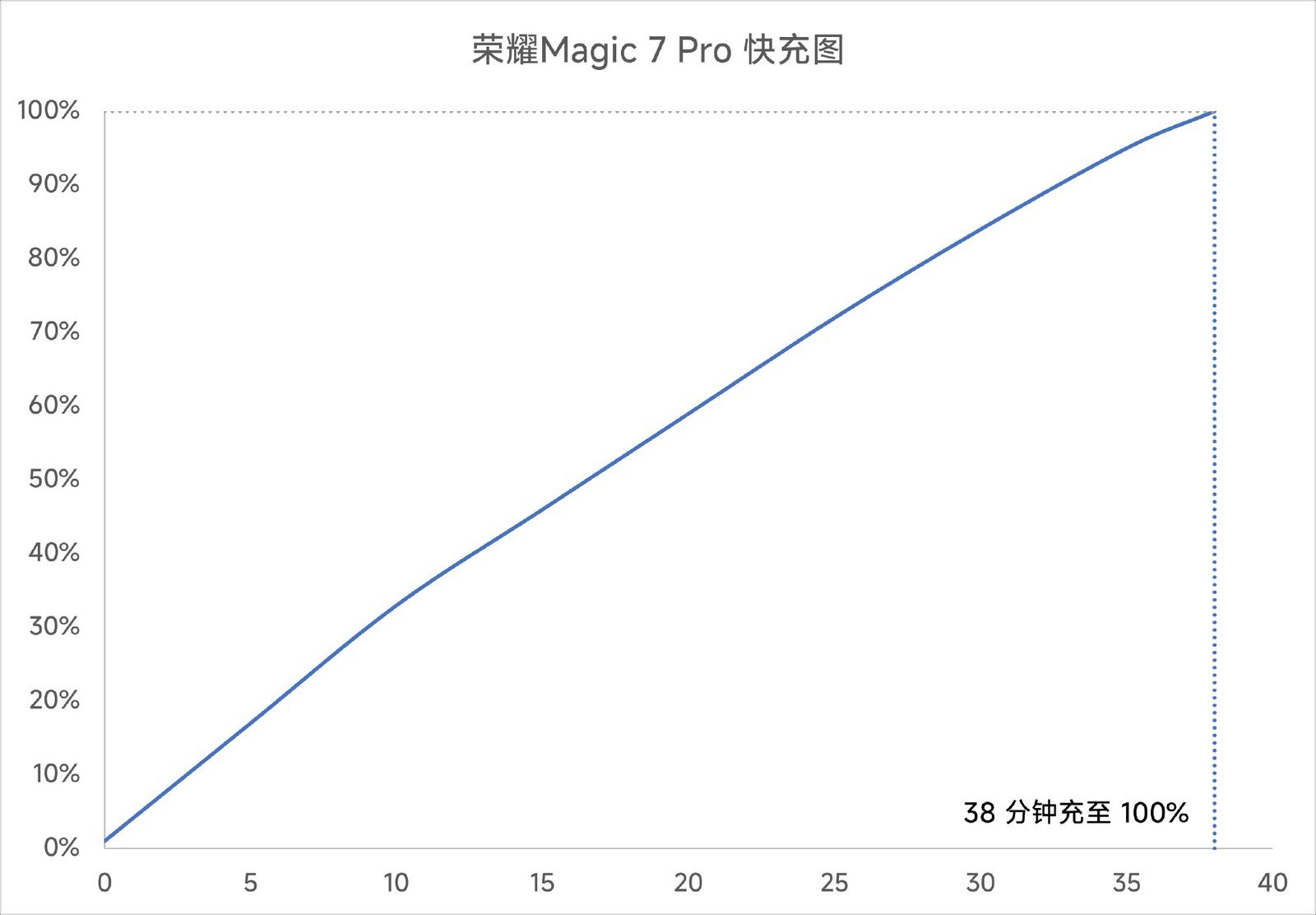 荣耀 Magic7 Pro 也延续了荣耀在快充方面的优势,这一代搭载的是 100W 的有线快充和 80W 的无线快充,实际测试下来,它的快充表现也非常不错,能在 38 分钟内从 1% 充至 100%,即便是大电池也不用担心补能速度的问题,让人用起来更加安心。