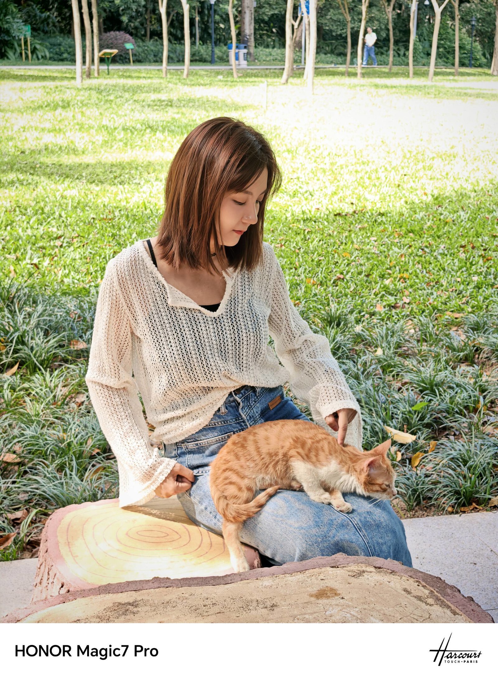 之前荣耀宣布与巴黎雅顾摄影工作室达成了合作,开创了独家的雅顾人像模式,这一功能也在 Magic7 系列上升级为了AI超清雅顾人像模式,通过AI光影增强大模型的加持,人像的皮肤质感通透,眉毛、眼睫毛更加立体细致。