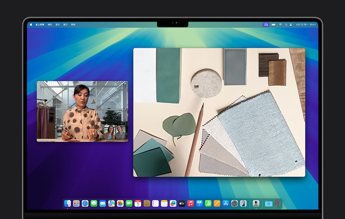 有趣的是,全新的 MacBook Pro M4 的前置摄像头也采用了 iMac M4 一样的 12MP Center Stage 摄像头,除了支持人物居中功能,还支持桌上视角功能,不管是拍人还是展示桌面上的内容都更方便了。此外,它还配备了有录音棚级三麦克风和六扬声器系统,无论是视频通话还是看视频,表现都很出色。