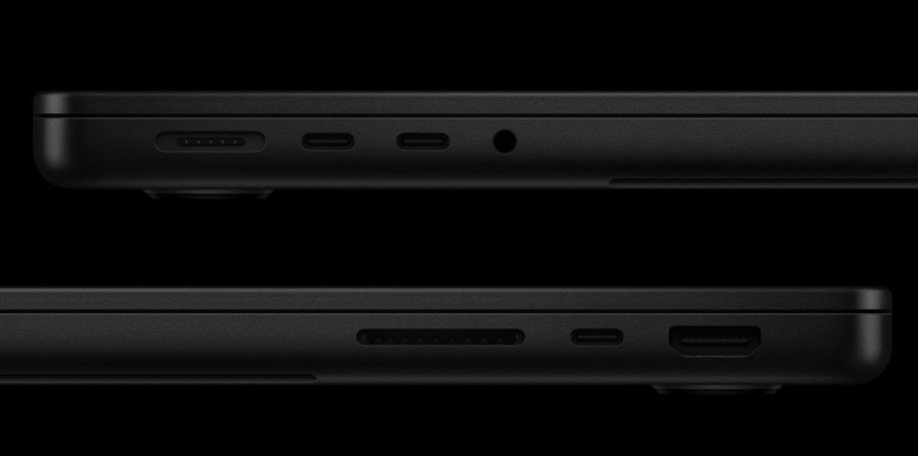 接口方面, MacBook Pro M4 Pro 和 M4 Max 均升级到了雷电 5 接口,可提供最高达 120Gb/s 的数据传输速度,相当于雷电 4 接口的两倍。