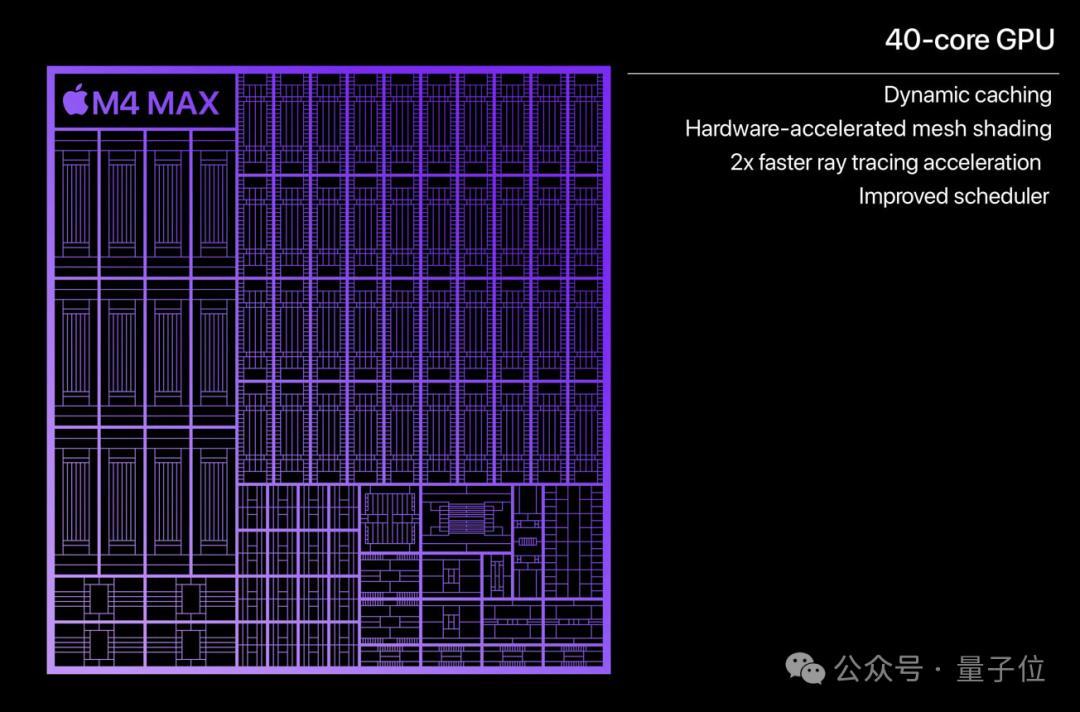 最高16核CPU+40核GPU的M4 Max芯片首发上车,再搭配神经引擎和ML加速器,使得用笔记本开发大模型成为了可能。