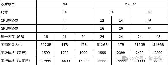 至于其他M4系列MacBook Pro(不含定制选配)的价格,这里就用一张表格来总结了。
