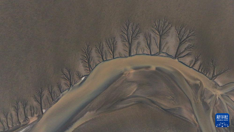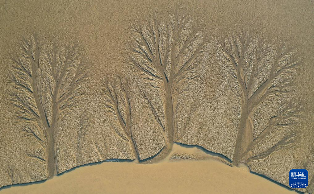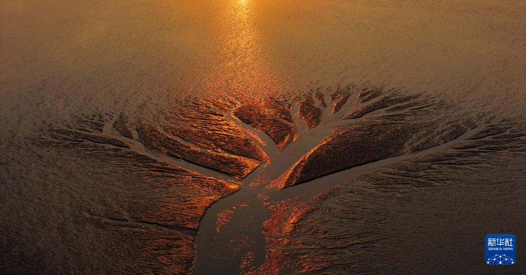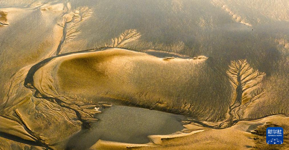 潮落留痕,由潮汐冲刷而形成的潮沟,形似“大树”,在江苏省盐城市东台条子泥湿地颇为密集,犹如湿地“森林”。