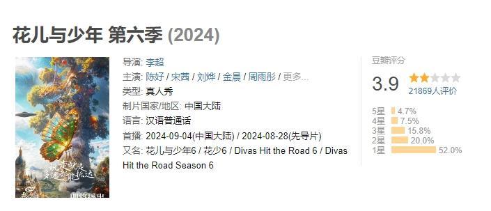 《花儿与少年 第六季》以豆瓣评分3.9成为了整个系列IP有史以来口碑最差的一季节目。