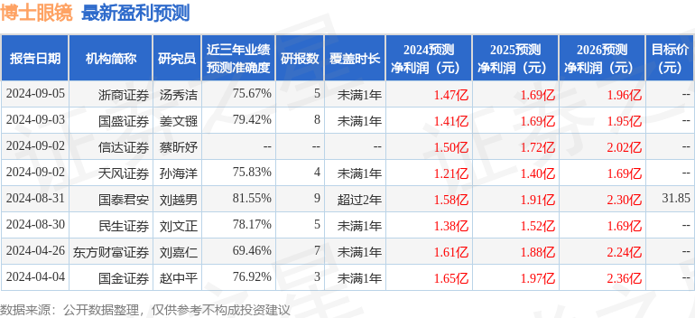 以下是详细的盈利预测信息: