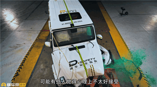 在40%正面偏置碰撞测试中,首先登场的是奔驰大G、路虎揽胜、迈巴赫S级等豪华车,测试车辆以60km/h的时速,40%重叠率正面碰撞蜂窝铝固定障碍物。